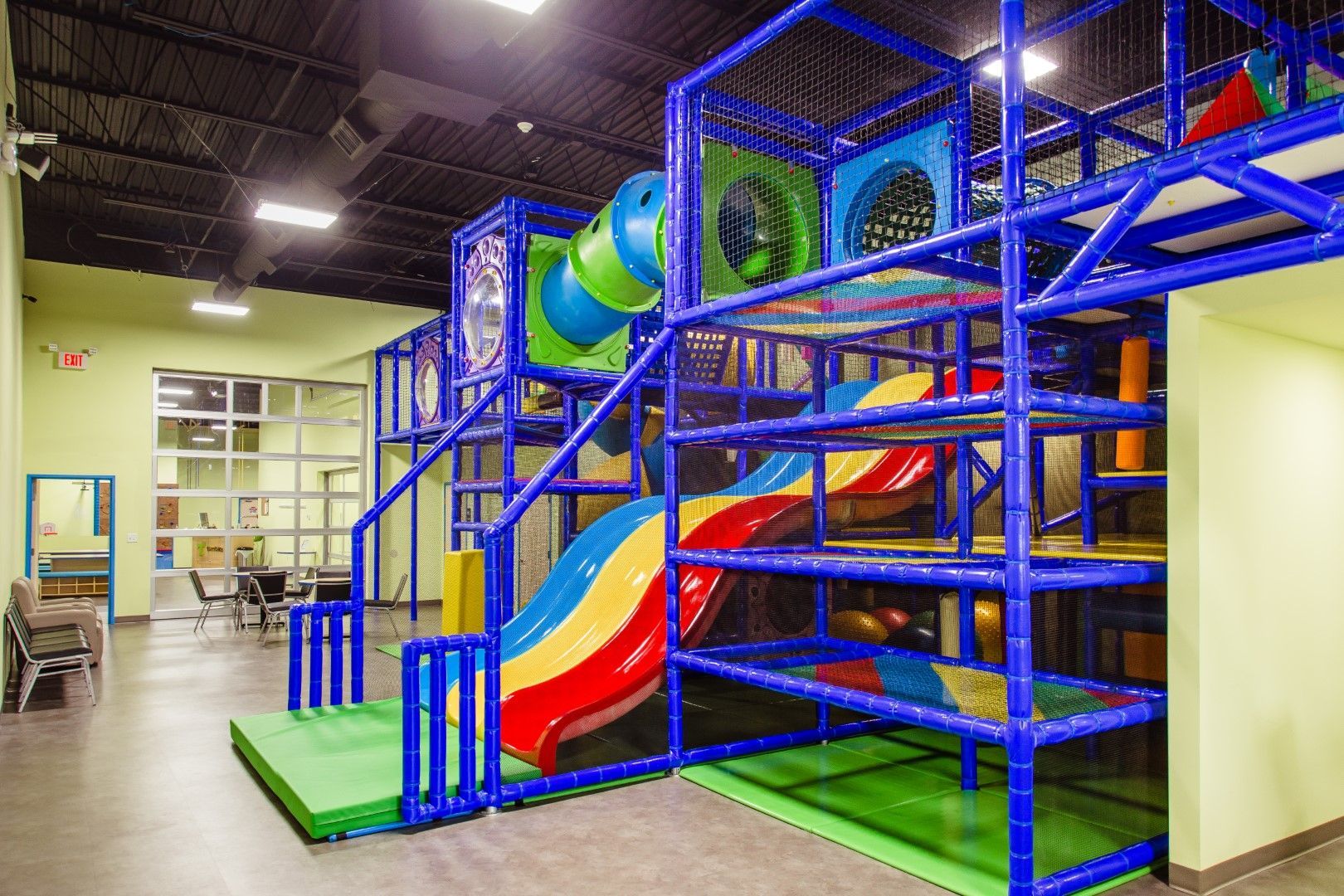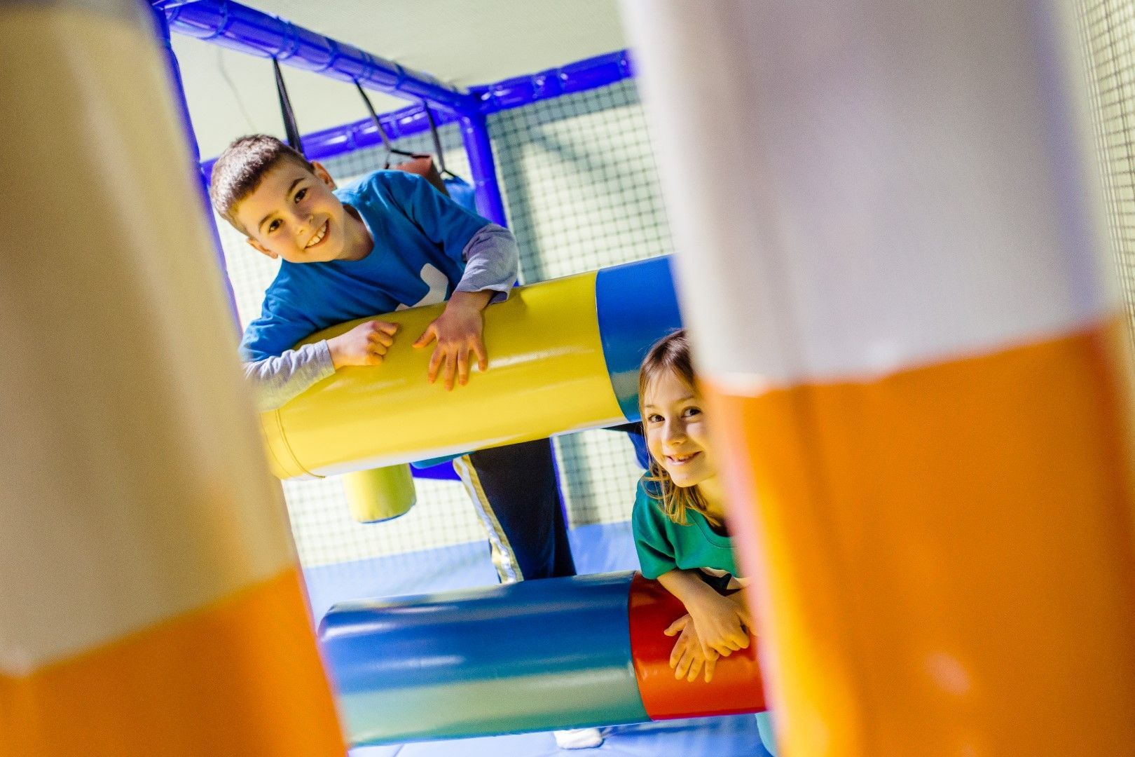 Forget the forecast! At the Tumble Zone indoor playground, kids can burn off energy, explore independently, and interact with friends—rain or shine. And while the laughter says “fun,” the Tumble Zone is designed for much more. Our indoor climbing and play structure is a professionally designed climbing and activity structure built around the same developmental milestones used in our gym curriculum, helping children grow stronger, more confident, and more coordinated while having fun.